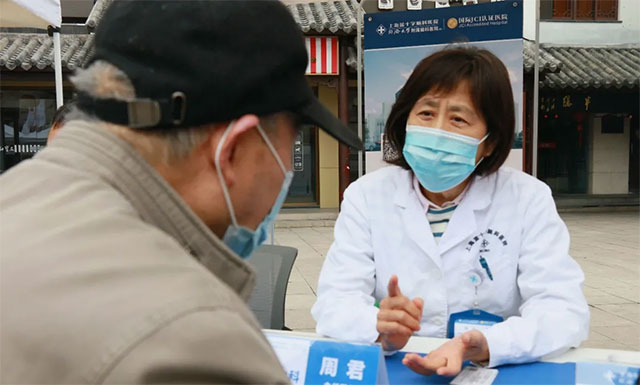 “醫(yī)生,吾最近困好午覺起來總是感覺特別乏力,天旋地轉(zhuǎn)一般,咯是徹啥事體啦?”“主仁醫(yī)生,阿拉左腿最近一直交關(guān)痛,走咯路都困難,該哪能辦?”……短短兩個小時的活動,上海藍十字腦科醫(yī)院的志愿者為百余位居民提供了血壓測量和健康問詢。