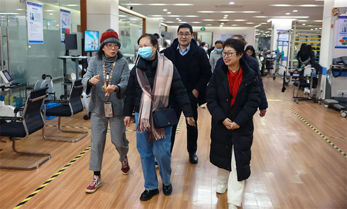 沈玉芹教授在王小紅總監(jiān)、潘耀良副院長和張敏主任等人的陪同下,實(shí)地參觀了藍(lán)十字醫(yī)院康復(fù)大廳,了解醫(yī)院康復(fù)醫(yī)學(xué)科營運(yùn)狀況及場地設(shè)備設(shè)施,對醫(yī)院心臟康復(fù)中心建設(shè)前期情況有了一定了解。