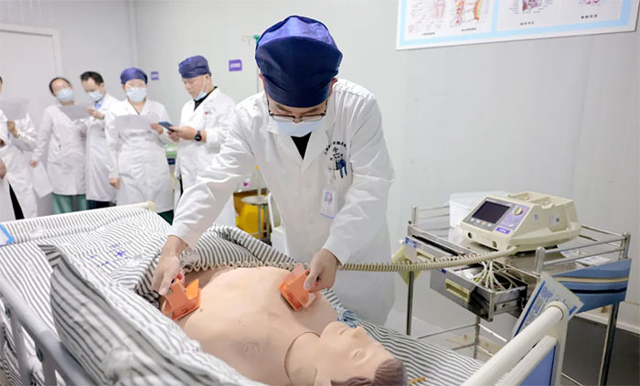 ▲ 醫(yī)院組織開(kāi)展心肺復(fù)蘇與電除顫技能專項(xiàng)考核