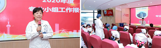匯報會結束后,朱建英教授作了意見中肯的點評。她肯定了各專業(yè)小組一年來所取得的成績,從專業(yè)小組匯報中能看到專業(yè)小組計劃的制定、落實、跟蹤和總結。朱教授尤其肯定了傷口組的報告——數(shù)據(jù)呈現(xiàn)詳實,內(nèi)容較豐富,有具體案例及照片,有計劃有成果等。對靜脈治療組提供的數(shù)據(jù)客觀、準確表示滿意等。她指出,必須培訓護士長、骨干小組成員,團隊建設非常重要。同時,朱教授對匯報中的不足進行了剖析和指導。她希望各小組在培養(yǎng)人才、改進質量、打造品牌等方面繼續(xù)發(fā)揮好標桿、引領作用,加快醫(yī)院護理質量、科教工作規(guī)范化、專業(yè)化進程,并持續(xù)改革創(chuàng)新,助推醫(yī)院護理工作的全面發(fā)展。她教導專業(yè)小組成員在臨床工作中要多思考、多提問、多實踐、多積累,在提升自身專業(yè)能力的同時,不忘對患者多傾注人文精神,用護理人的專業(yè)知識與技能為患者提供專業(yè)化服務,把“病人在我心中有多重,我在病人心中就有多重”服務理念貫穿于工作始終。