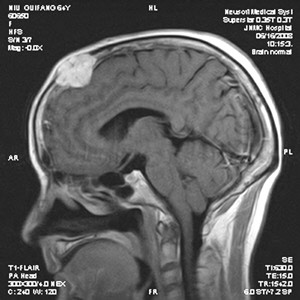 顱骨骨瘤是一種生長緩慢的良性骨腫瘤,與周圍顱骨分界常不清楚,可以發(fā)生于顱骨的任何部位。常見單發(fā),但亦有多發(fā)或聚發(fā)于一處者。青中年好發(fā)。瘤體較小者一般無自覺癥狀,較大者局部輕微脹痛或麻木感,體檢局限腫塊,基底寬,表面光滑與頭皮無粘連,無壓痛。位于顱底或鼻竇處,出現(xiàn)腦神經(jīng)受累癥狀及鼻塞。生長緩慢無癥狀的小骨瘤,可予觀察處理;生長較快,瘤體大及有腦受壓癥狀者,手術(shù)治療。腫瘤切除后顱骨缺損范圍大者同期行修補(bǔ)術(shù)。無特效藥物治療,手術(shù)者,術(shù)后使用抗生素治療一周左右。