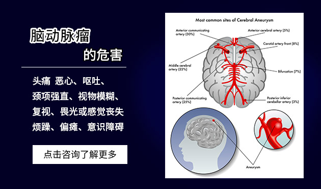 腦動(dòng)脈瘤對(duì)人體有哪些危害?造成顱內(nèi)動(dòng)脈瘤的病因尚不甚清楚,多數(shù)學(xué)者認(rèn)為顱內(nèi)動(dòng)脈瘤是在顱內(nèi)動(dòng)脈管壁局部的先天性缺陷和腔內(nèi)壓力增高的基礎(chǔ)上引起,高血壓、腦動(dòng)脈硬化、血管炎與動(dòng)脈瘤的發(fā)生與發(fā)展有關(guān)。在臨床上經(jīng)常碰到許多患者問(wèn)道,腦動(dòng)脈瘤對(duì)人體有哪些危害?。