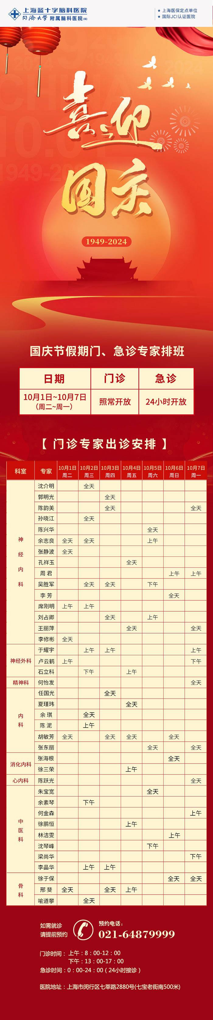 喜迎國慶,歡度佳節(jié)!在此,上海藍十字腦科醫(yī)院【同濟大學附屬上海藍十字腦科醫(yī)院(籌)】祝愿我們偉大的祖國永遠繁榮昌盛,人民幸福安康!