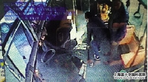 監(jiān)控顯示,小伙突然面朝下摔倒在車廂地板上