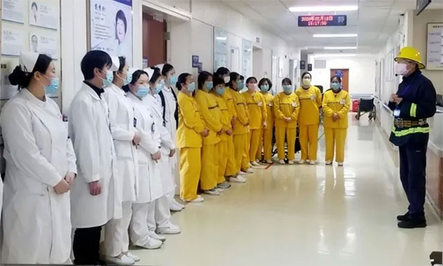 ▲ 防疫期間,在醫(yī)院神經(jīng)內(nèi)科3B病區(qū)對醫(yī)護人員進行消防設(shè)施設(shè)備培訓(xùn)
