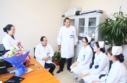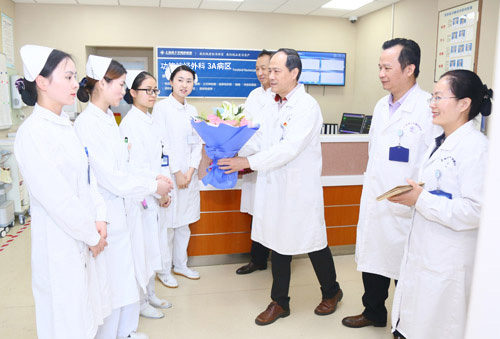 項(xiàng)院長(zhǎng)親自為護(hù)士送上鮮花