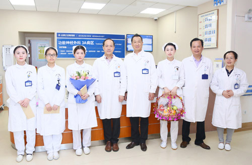 4月25日,院長(zhǎng)項(xiàng)耀鈞、醫(yī)務(wù)科科長(zhǎng)沈廣智和護(hù)理部主管護(hù)師李京納來(lái)到三樓A病區(qū)功能神經(jīng)外科,看望被癲癇伴突發(fā)精神綜合癥患者所傷的四名醫(yī)護(hù)人員,表達(dá)醫(yī)院的關(guān)懷和慰問(wèn),同時(shí)為當(dāng)事護(hù)士送上鮮花、水果和慰問(wèn)信。