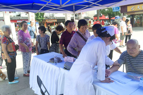 專家們認(rèn)真、耐心對待來咨詢的每一位居民,頂著驕陽堅(jiān)持為前來咨詢的居民耐心解答。當(dāng)天咨詢的居民以老年人居多,不少人都有“三高”困擾。由于“三高”老年人為腦血管病的高危群體,且臨近盛夏伏天、腦血管病的高發(fā)季節(jié),張德榮等專家醫(yī)生不僅耐心指導(dǎo)他們要科學(xué)安全地用藥、注意查看藥品的有效期,同時要注意健康飲食,低脂低鹽低糖飲食,多吃蔬菜、水果,還強(qiáng)調(diào),“如果突然發(fā)生眩暈、劇烈頭痛、步態(tài)異常、哈欠不斷、血壓異常、嗆咳、吞咽困難或者半身麻木、疲倦、嗜睡、耳鳴等,這些都是腦血管病的先兆表現(xiàn),一定要及時引起重視、及早就醫(yī)。”
