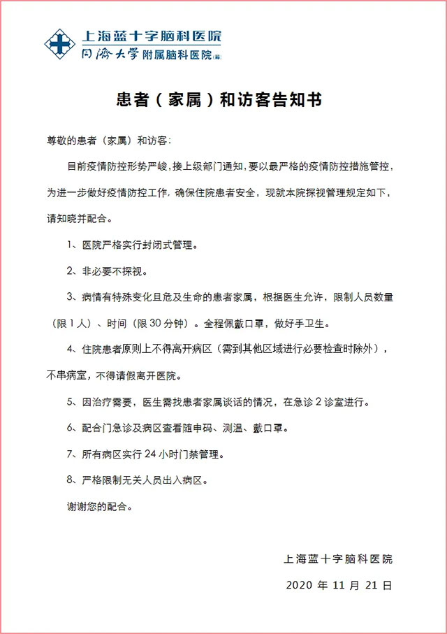 目前疫情防控形勢嚴峻,為進一步做好疫情防控工作,確保住院患者及工作人員安全,現(xiàn)就本院工作人員管理規(guī)定如下,請知曉并配合。