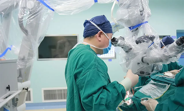 在征得患者家屬同意,手術(shù)準(zhǔn)備就緒后,于3月22日,李士其教授在潘仁龍主任協(xié)助下經(jīng)蝶竇入路成功為患者進(jìn)行了手術(shù),在蔡司顯微鏡(雙熒光)下順利將患者鞍內(nèi)腫物切除。術(shù)后患者視物模糊、頭痛、惡心等癥狀明顯緩解,目前患者恢復(fù)良好,已康復(fù)出院。