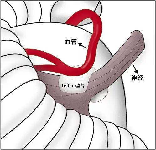 ▲ 微血管減壓術(shù),以Tefflon墊片將責(zé)任血管和神經(jīng)進(jìn)行分離