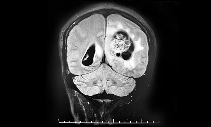 ▲ 左側頂枕葉巨大腫瘤伴局部瘤卒中