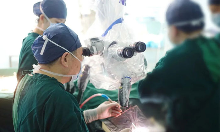 10月15日上午,歷時5個小時,籍由神經(jīng)電生理監(jiān)測對病灶的精準定位,有著豐富手術經(jīng)驗的李士其教授在黎軍主任協(xié)助下,顯微鏡下精準地完成了腫瘤切除手術,并保留了患者腦功能區(qū)在解剖上和功能上的完整性。術后,患者神志清楚,肢體活動和語言功能正常,右側肢體活動逐漸恢復,無新發(fā)功能缺損,復查CT,中線移位已經(jīng)回歸正常,手術圓滿成功。
